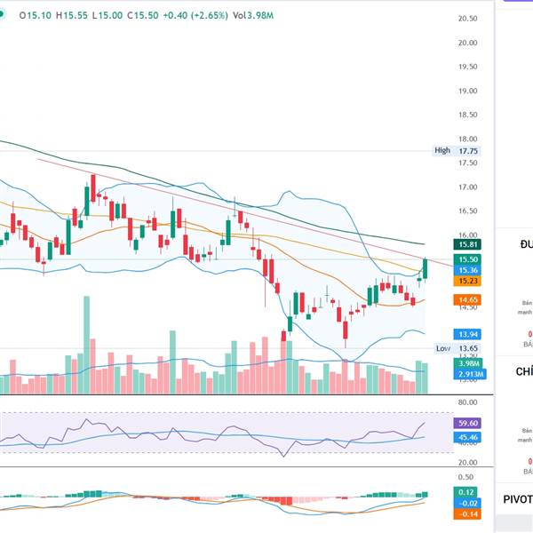 Về xu hướng: Trên khung biểu đồ tuần, cổ phiếu TV2 đang trong một xu hướng tăng, được hỗ trở bởi đường EMA 20. Chiến lược giao dịch theo xu hướng được