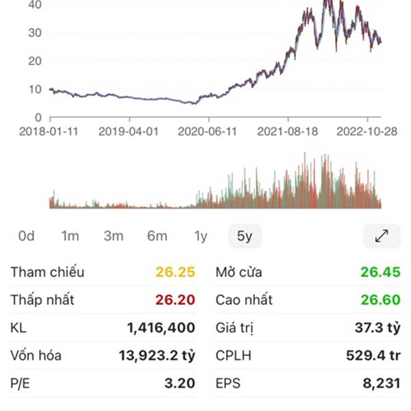 Nhìn chart 5 năm thì con này vẫn cao như kiểu giữ giá phân phối thì phải. Như con Ceo nó về đáy lúc covit rồi bật lên. Con này vẫn cao chót vót