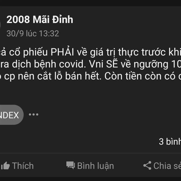 Có anh em nào muốn cầm tiền chờ cơ hội không. Tôi đã nhìn ra vde hôm 30/9 và chuỗi ngày đến khi nghỉ tết.