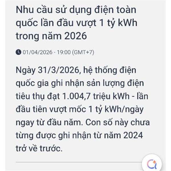 Chạy hết công suất tua bin mới đủ điện. Vô mùa hè khoảng tháng 6-2026 thì nhà máy chạy tẹt ga luôn