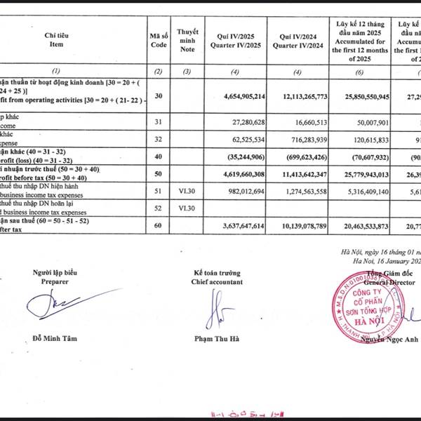 Ra qua kqkd quý 4 hơi hẹo khi lãi không đạt như kì vọng. Nhưng cả năm lũy kế vẫn trên 20 tỉ. Kế hoạch năm sau có nhích nhẹ lên tí. Chứng tỏ thị trường vẫn đang rất thuận lợi. Đặc biệt tỉ giá đang hạ n...Thêm