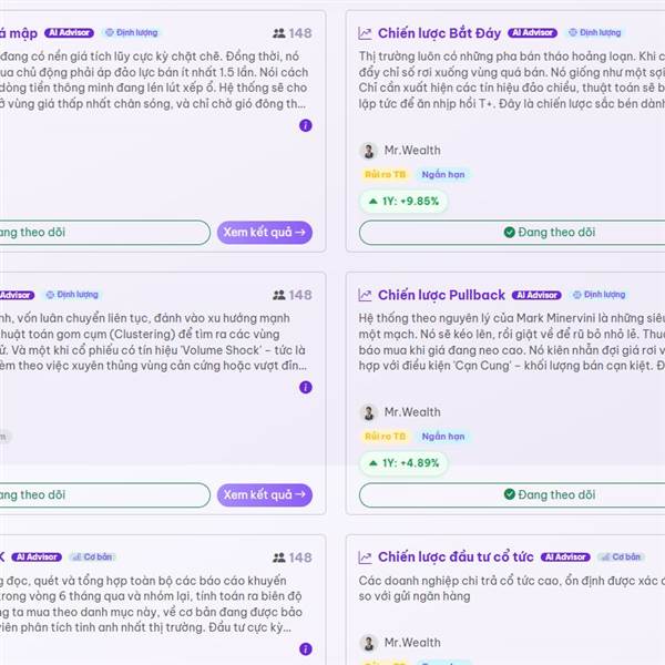 Mời Anh Chị đăng ký trải nghiệm miễn phí Finwealth. Nơi AI làm việc 24/24 để tìm kiếm các cơ hội đầu tư theo các chiến lược khác nhau.