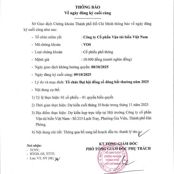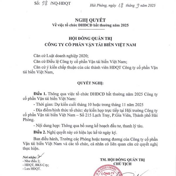 Lãi tăng đột biến 116%, một doanh nghiệp vận tải biển chốt quyền chia cổ tức tỷ lệ 11%