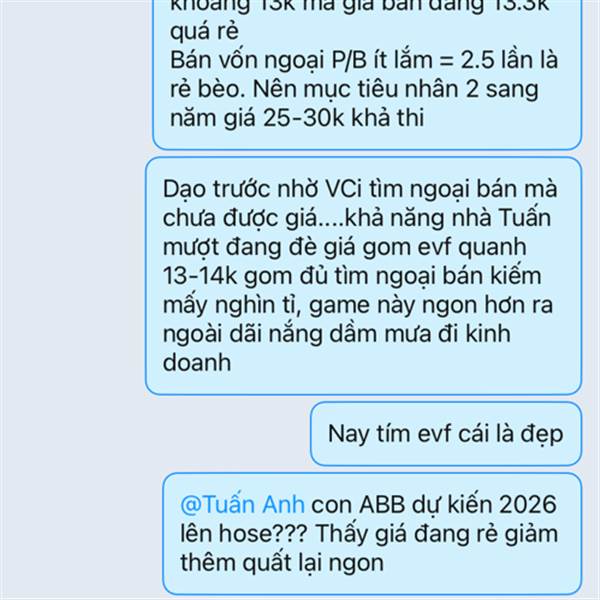 Khỏi nói nhiều nhịp này EVF tăng 32% từ 13.2 là phi 17.15k.