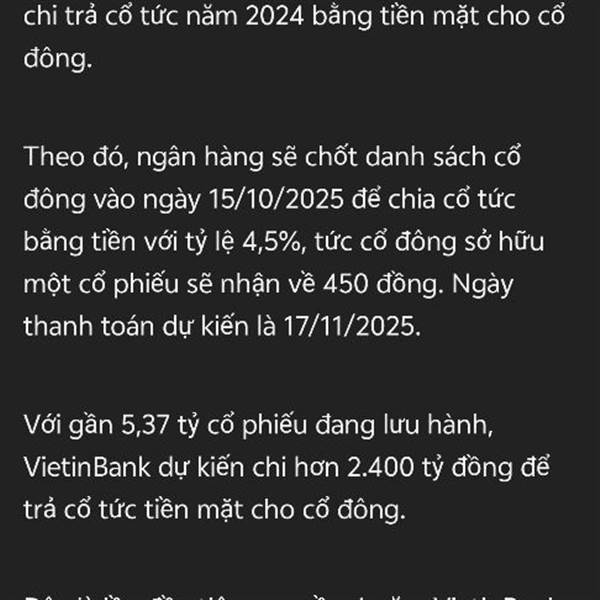 Có tin chia cổ tức CTG rồi !