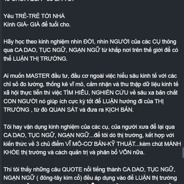 1. Học, đọc và HIÊU cho kỹ những lịch sử kinh tế, tài chính gắn liền với vị trí địa lý, tài nguyên, con người của các ĐẾ CHẾ lớn và các KHỐI LIÊN MINH LỢI ÍCH LỚN k...Thêm