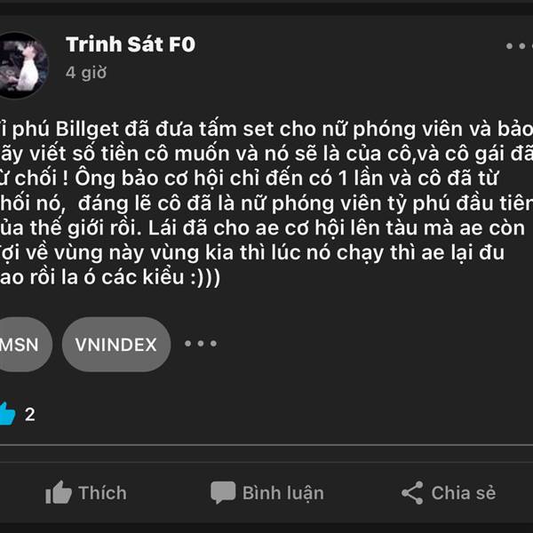 Bình thường thị truong giảm điểm mạnh là trong đó có sự góp mặt của Msn !mà từ tuần trước trước tới giờ Msn ít xuất hiện hẳn ! Lúc đấy cổ đông nhắc A Quang miết,la ó ì xèo, chửi rủa