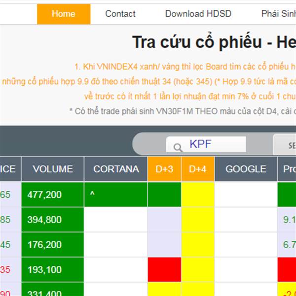 KPF phần mềm tín hiệu chứng khoán xuất hiện màu xanh báo mua ngày 13/12/2021