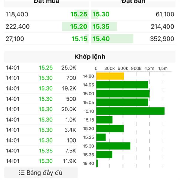 Lúc này Pow xấu quá nhiều người chê nên vẫn bán mạnh quanh 15.1-15.15 > Mi. Đang mua vào vùng giá này! Khi nào Pow lên 16-17-18 mọi người khen ngon Mi sẽ bán lại👍 Đã khớp lô 15.15 còn chờ khớp nốt lô...Thêm
