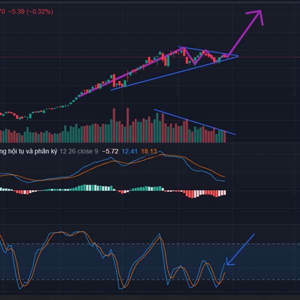 - MACD đường xanh đã cắt lên tạo đáy thành công;