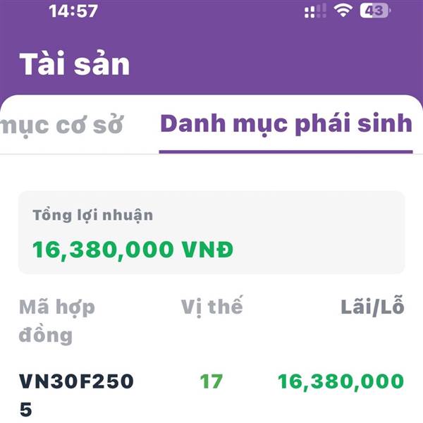 GEX quay xe rút chân sau khi Robot Dứa Ichimoku Take Profit có tín hiệu Mua 42.5-43 lên 44.65…Kết thúc phiên đáo hạn Phái sinh với Lệnh Long dài 1810 lên 1907! Mở tkck Phú Hưng dưới ID A0884 của công ...Thêm