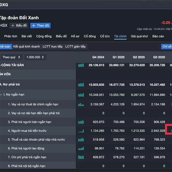 Lướt qua bảng cân đối kế toán của dxg, mục người mua trả tiền trước tăng gấp đôi so với quý 3/2025. Như vậy là đang bán được hàng đúng không cả nhà