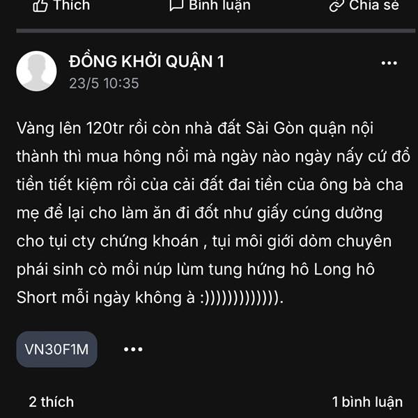 Có thèn nào con nào cầm được tiền lãi thậm chí nguyên vẹn vốn gốc ban đầu bước ra khỏi VN30f1m đâu mà cứ chơi quài :))))))))))))))).