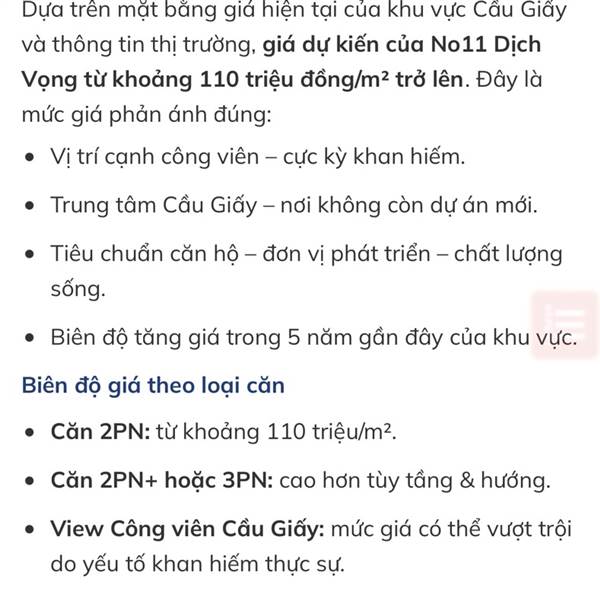 Chung cư No11 Dịch Vọng cập nhật Tháng 3/2026 : chung cư cao cấp ngay công viên Cầu Giấy với giá bán, thiết kế, mặt bằng và tiến độ hấp dẫn.