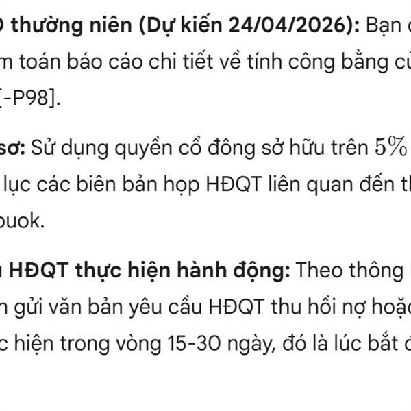 Tại ĐHĐCĐ sắp tới vào ngày 24/04/2026 tới, cần yêu cầu Ban lãnh đạo cung cấp: