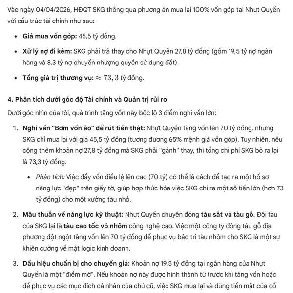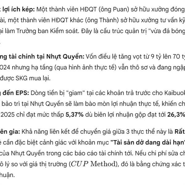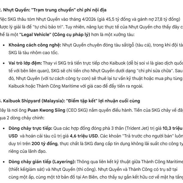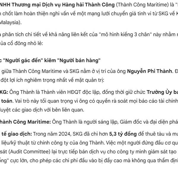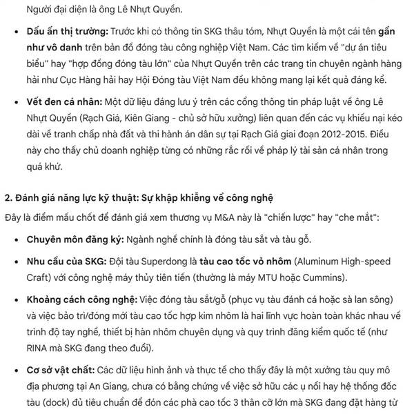 Cổ đông nhỏ lẻ có quyền nghi ngờ về "cách" SKG rút ruột lợi nhuận tuồn về sân sau, lách luật tinh vi, rất mong UBCKNN và cơ quan thuế vào cuộc, thời đại vươn mình không thể để những loại lãnh đạo sâu ...Thêm