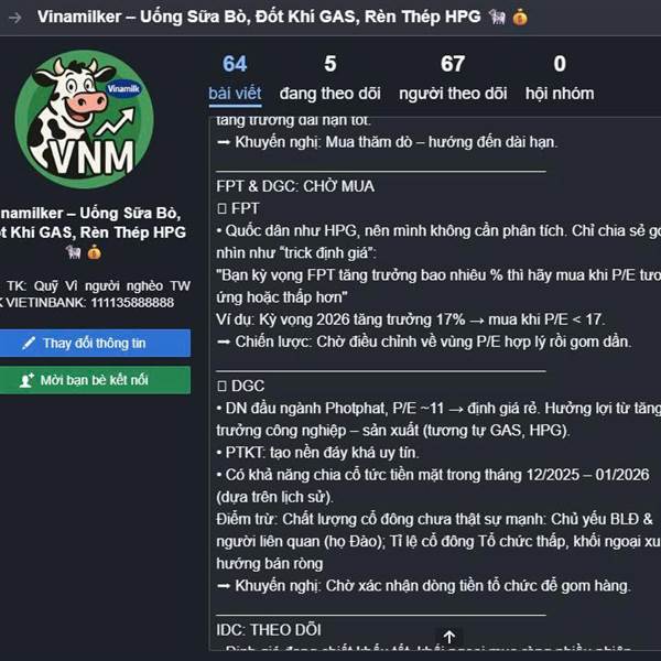 Hiện tại VNM đã khá đẹp rồi, h nền LN của BÒ cũng được 10%, thoải mái để BÒ gồng cho các phiên điều chỉnh (nếu có). Thời gian tới tần suất BÒ đăng bài VNM sẽ ít hơn, BÒ sẽ tập trung phân tích tìm kiếm...Thêm