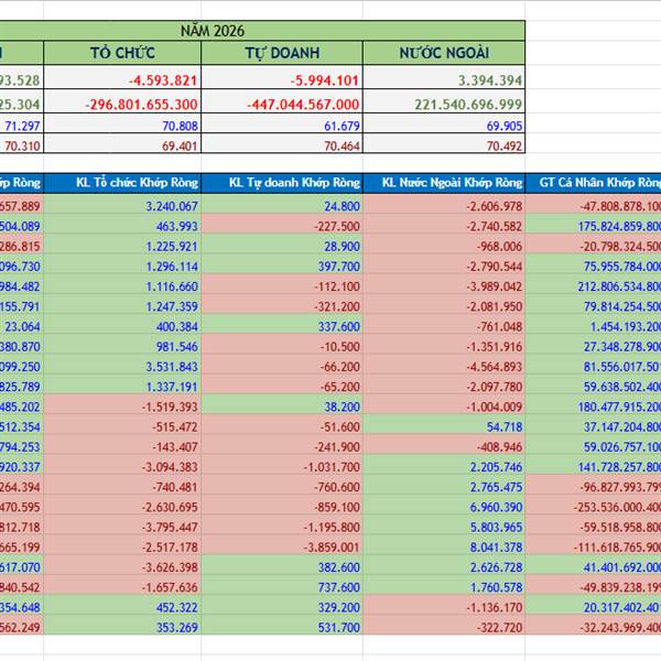 Còn nếu NN bán ròng thì tỷ lệ xanh chỉ còn 50% :)