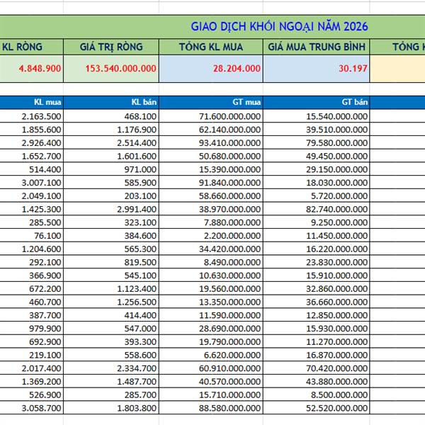 [PVD] Phân tích chính xác giao dịch khối ngoại trong năm 2026.