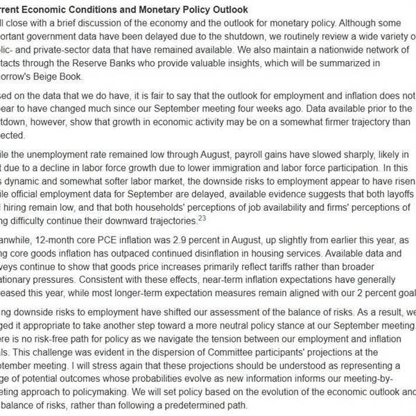 Chủ tịch Fed Jerome Powell cho biết triển vọng việc làm và lạm phát hầu như không thay đổi so với cuộc họp tháng 9, dù dữ liệu gần đây cho thấy tăng trưởng có phần vững hơn dự kiến.