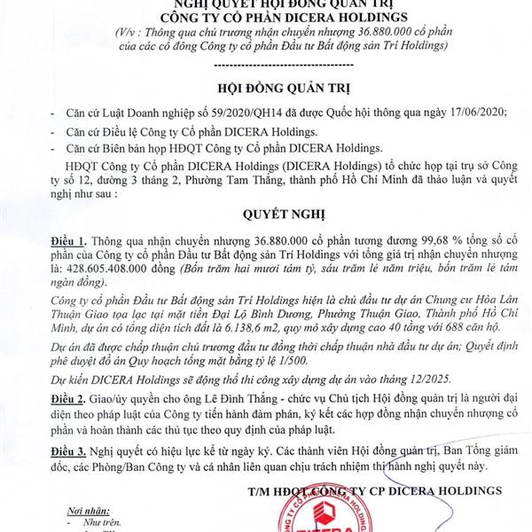 DGC được phê duyệt chủ trương 1 DA thì Tím..