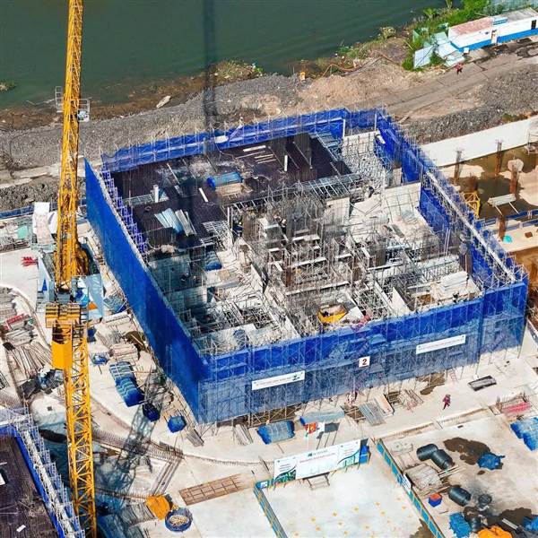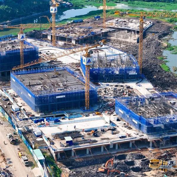 Công nhân tấp nập, máy móc, cẩu tháp, sắt thép... 3 ca 4 kíp.