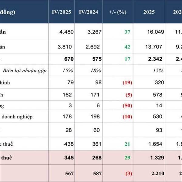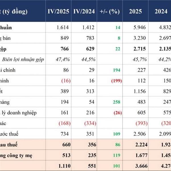 Tính cả năm 2025, công ty cảng biển này ghi nhận doanh thu kỷ lục hơn 5.900 tỷ đồng và lợi nhuận tiệm cận đỉnh lịch sử với 2.224 tỷ đồng.