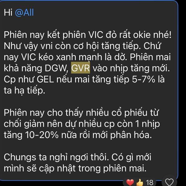 Đại ca cho mua các mã bao gồm: IDC, GVR, VCB, DGW, GEL toàn ở vùng đỉnh khiến cho nđt lỗ ít nhất 10% mỗi mã. Các mã giảm thốc đầu đại ca lại cho gia tăng liên tục xong nếu nó có tăng thì đại ca show l...Thêm