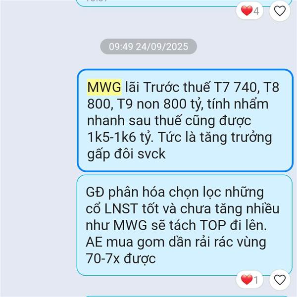 Cổ phiếu của bạn đỏ nhưng MWG của tôi vẫn xanh.Số đông quan tâm đến chỉ số, còn NĐT thông minh chỉ quan tâm đến doanh nghiệp. Chỉ có mua được doanh nghiệp tốt, rẻ mới mang tiền về cho chúng ta thôi