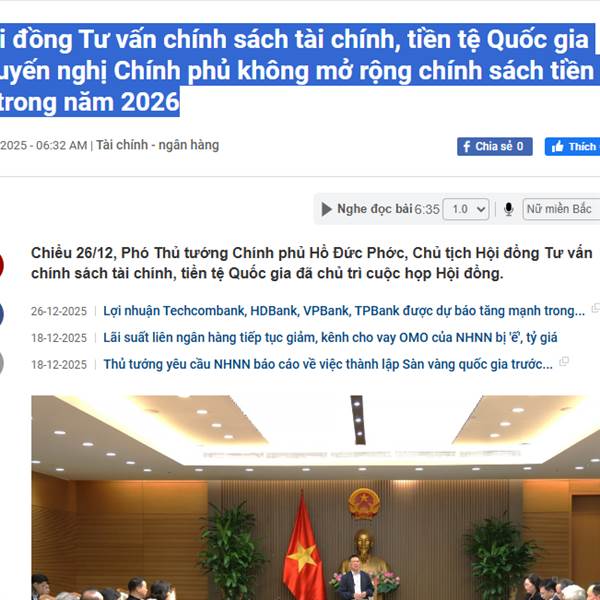 VÌ SAO KIẾN NGHỊ "KHÔNG MỞ RỘNG CS TIỀN TỆ " KHÔNG ĐÁNG NGẠI ? ---- 1. Đây là Hội đồng tư vấn CSTC có vai trò gì ? + Hội đồng thường bao gồm : Chủ tịch Hội đồng: Thường do một Phó Thủ tướng Chính phủ đảm...Thêm