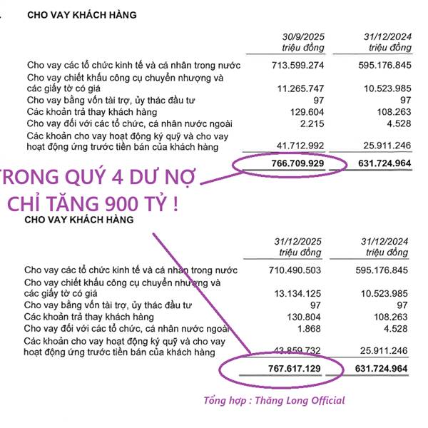 VPB đang rất lạ mọi người ạ ----- Xem xét mục tỷ trọng cho vay của VPB trong BCTC Q4 vừa rồi, mình có 1 vài nhận xét như sau : 1. Tỷ trọng lớn nh ất : +Lớn nhất : Cho vay tiêu dùng hộ gia đình (23,85%):...Thêm