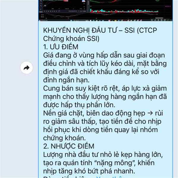 KHUYẾN NGHỊ ĐẦU TƯ – SSI (CTCP Chứng khoán SSI) 1. ƯU ĐIỂM Giá đang ở vùng hấp dẫn sau giai đoạn điều chỉnh và tích lũy kéo dài, mặt bằng định giá đã chiết khấu đáng kể so với đỉnh ngắn hạn. Cung bán suy...Thêm