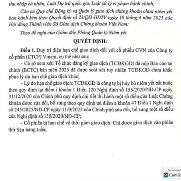Bất thường ở cổ phiếu CVN khi đã ra bctc kiểm toán năm 2025 đúng hạn 31.3 mà không thấy HNX ra thông báo trạng thái giao dịch mới là duy trì hạn chế giao dịch hay cảnh báo như PVL.