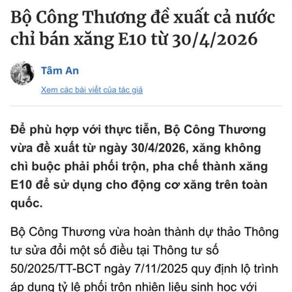 Xăng E10 (bao gồm 90% xăng khoáng và 10% ethanol) tại Việt Nam được sản xuất và phân phối chủ yếu bởi hai doanh nghiệp đầu mối lớn là Tập đoàn Xăng dầu Việt Nam (Petrolimex) và Tổng công ty Dầu Việt N...Thêm