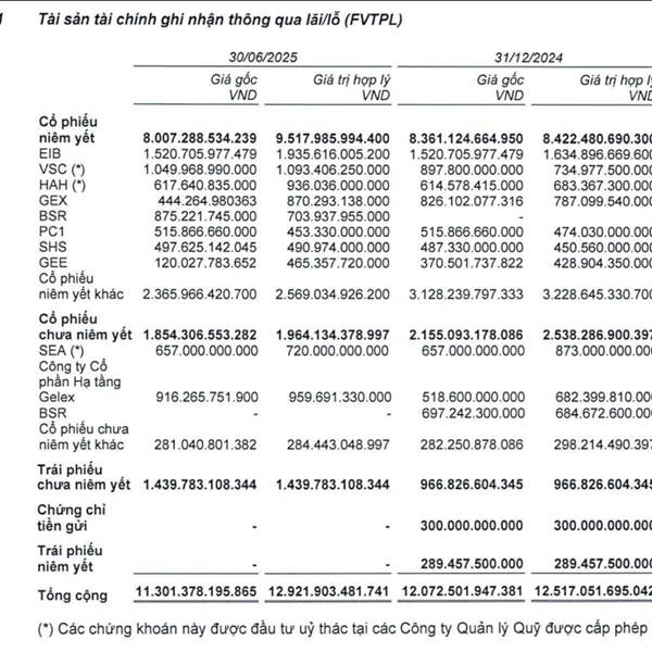 Trong báo cáo bán niên soát xét thì VSC HAH SEA được quăng ở mục ủy thác đầu tư. Anh em cần quan tâm giá gốc đầu tư VSC 1049tỷ, HAH 617 tỷ, SEA 657 tỷ