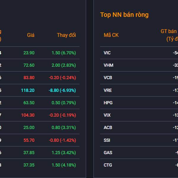 Thị trường mở cửa với sắc xanh nhẹ nhưng nhanh chóng quay đầu giảm sâu. VNINDEX đóng cửa tại 1,791.43 điểm, giảm 21.97 điểm (-1.21%). VN30 chỉ có 10 mã tăng nhưng c...Thêm