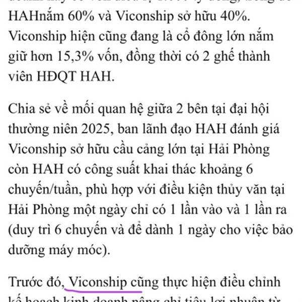 VSC là case bị thị trường đánh giá sai. Thực tế lợi nhuận của VSC bền vững đến từ các cảng biển lớn và đội tàu vận tải liên kết cùng HAH. VSC đã đóng 2 tàu thuộc sở hữu của VSC. Dự án khu công nghiệp ...Thêm