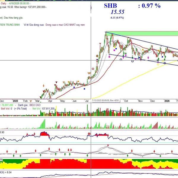 SHB đã trải qua 8 tháng tích lũy trong kênh song song hướng xuống, đồng thời được nâng đỡ bởi vùng hỗ trợ mạnh quanh 14. Hiện tại, cổ phiếu đã xuất hiện phân kỳ dương trên MACD và RSI, cho thấy động l...Thêm