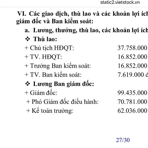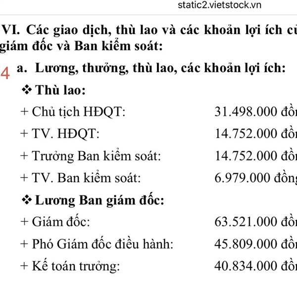 - Chủ tịch HĐQT từ 31,498 triệu/tháng lên 37,758 triệu/tháng;