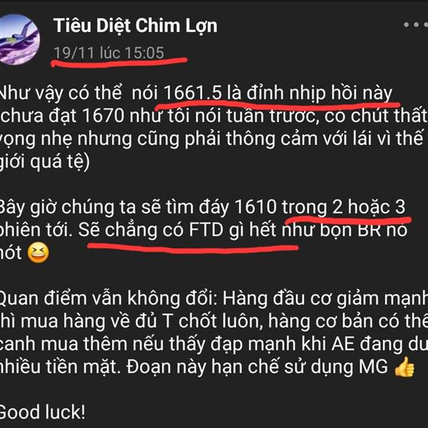Cho tới lúc này có thể tự tin khẳng định tất cả hàng bắt đáy 2 phiên trước của tôi về đều có ăn. Chia vui với những ai chung đường. Hàng về tùy mồm, anh em tùy nghi di tản 👍