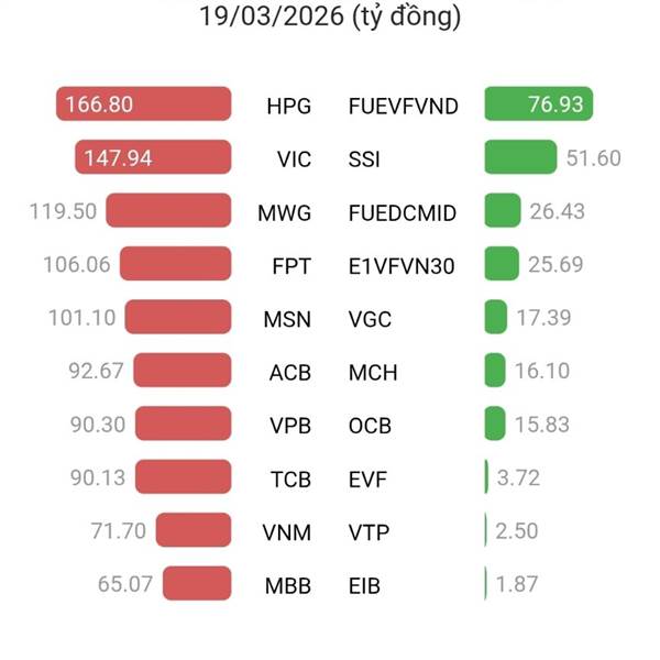 Nay 19/03 tự doanh mạnh tay bán ròng hơn 1.3k tỷ, HPG VIC FPT MWG MSN đều bị bán trên trăm tỷ