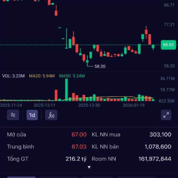 Mua bắt đáy 69.7 trước chia cổ tức vẫn chưa về bờ :))) đc cây tím đỡ đau lòng 😁😁