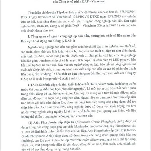 Khởi công dây truyền acid phosphoric tinh khiết phục vụ chip ai.