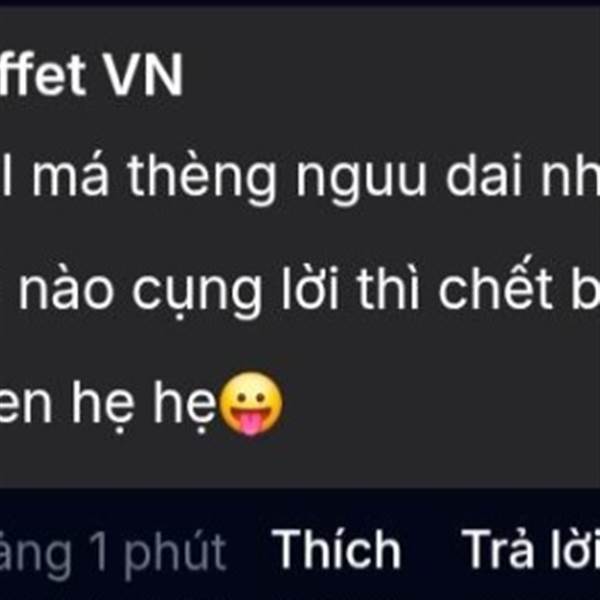 Cháo vượn lại quậy rùi Ế quá he ? Hẹ hẹ😛 Uýnh bạc nó kỳ ghê Cổ phíu tụi nó đ íu bán đượt cứ ở giá cao éo dám rơi Cổ mừ tụi lái bán đượt rùi thì lời cao vẫn chớt Rùi tụi nó biểu do tụi bêy đ íu biếc mua, k...Thêm