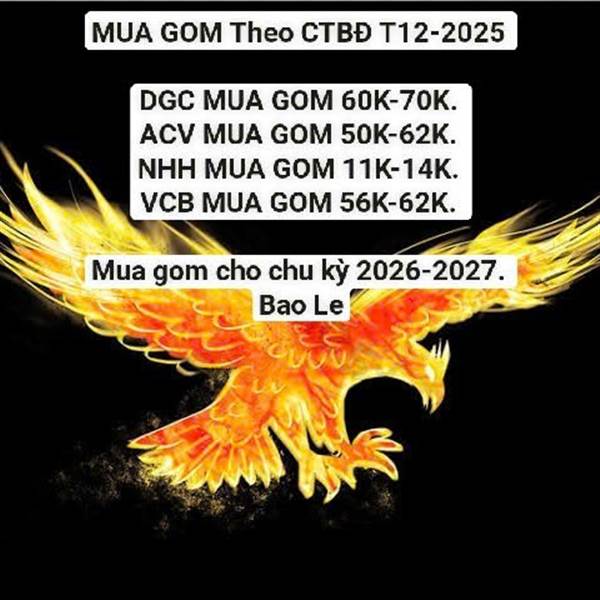 Mua gom trên 3 tháng 10-11 và 12-2025 theo CTBĐ. Em đã theo dõi và phân tích từ năm 2018 rồi. Bth 28-32k. Nhh 11-14k. Acv 50-56k. Vcb 56-62k.... Tiến tới X2 trở lên chu kỳ 2026-2027. Bao Le