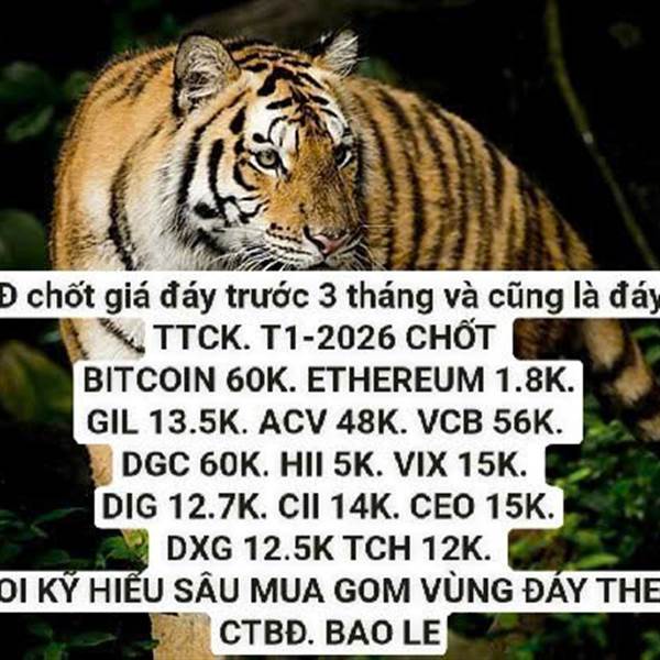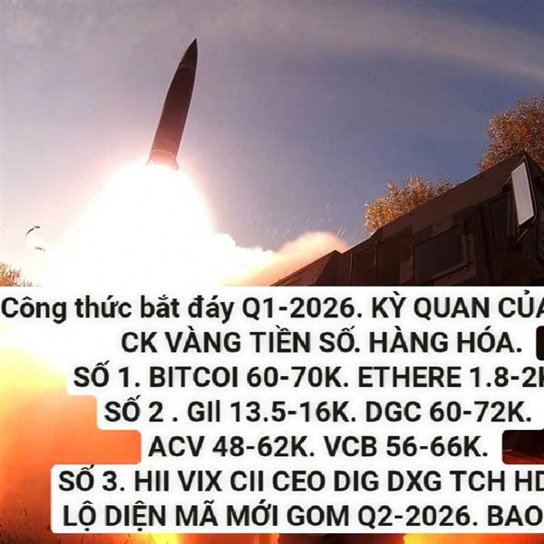 Công thức bắt đáy Q1-2026. KỲ QUAN CỦA TTTC. CK VÀNG TIỀN SỐ. HÀNG HÓA. SỐ 1. BITCOI 60-70K. ETHERE 1.8-2K. SỐ 2 . GIl 13.5-16K. DGC 60-72K. ACV 48-62K. VCB 56-66K. SỐ 3. HII VIX CII CEO DIG DXG TCH H...Thêm