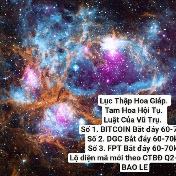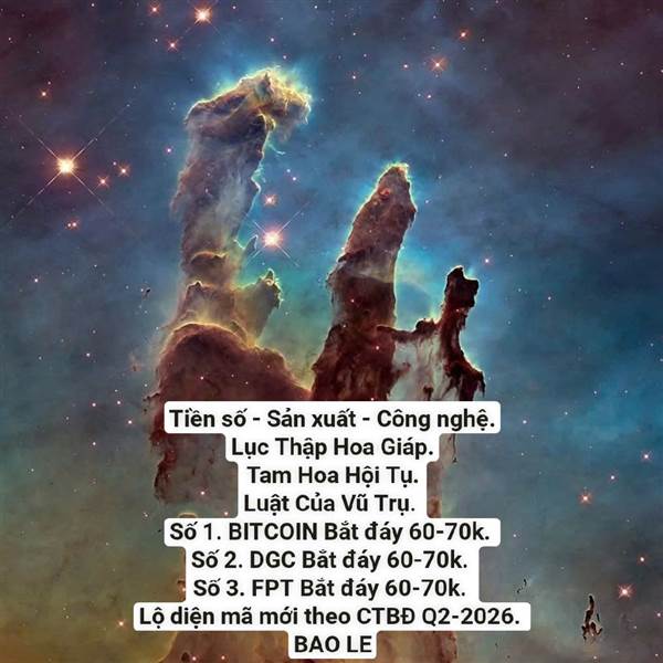 Lục Thập Hoa Giáp. Tam Hoa Hội Tụ. Luật Của Vũ Trụ. Số 1. BITCOIN Bắt đáy 60-70k. Số 2. DGC Bắt đáy 60-70k. Số 3. FPT Bắt đáy 60-70k. Lộ diện mã mới theo CTBĐ Q2-2026.