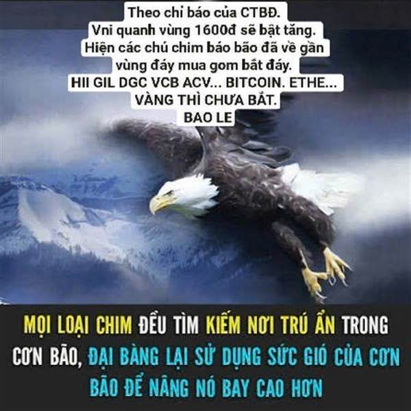 Theo chỉ báo của CTBĐ. Vni quanh vùng 1600đ sẽ bật tăng. Hiện các chú chim báo bão đã về gần vùng đáy mua gom bắt đáy. HII. GIL. DGC. VCB. FPT. ACV... BITCOIN. ETHE... VÀNG THÌ CHƯA BẮT ĐƯỢC.