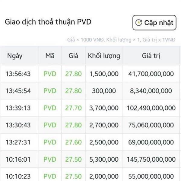Cần mua thoả thuận khoảng 10 triệu cp PVD giá 20k. Các bác có gì nhắn 1 tiếng nha. Trân trọng!