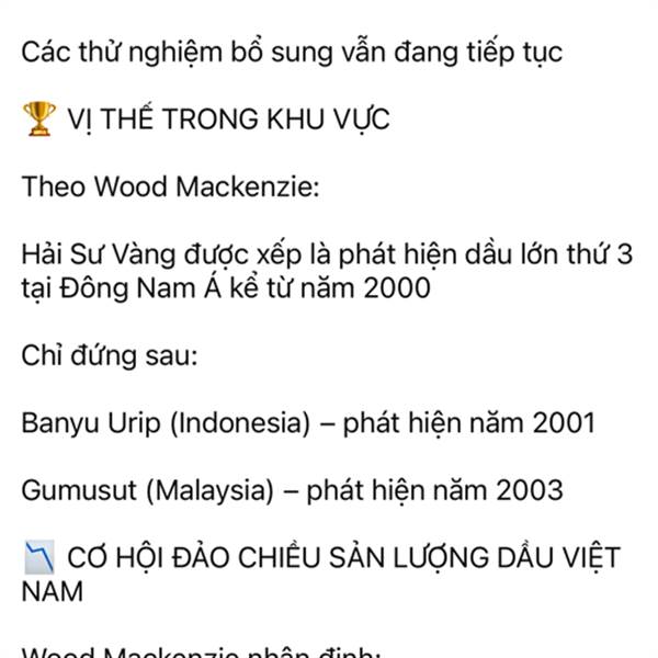 Mỏ Hải Sư Vàng lớn cỡ nào và cả Đông Nam Á và thế giới đang phát sốt. Đặc biệt thế giới đang thèm khát dầu khí như lúc này. Đánh yêu vào M mấy ông hô dầu khí hết thời. Trân trọng! PVS, PVD trúng đậm đ...Thêm